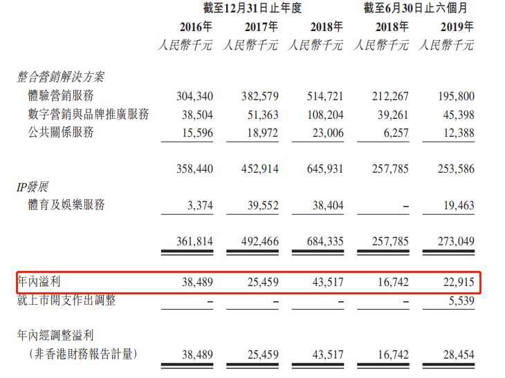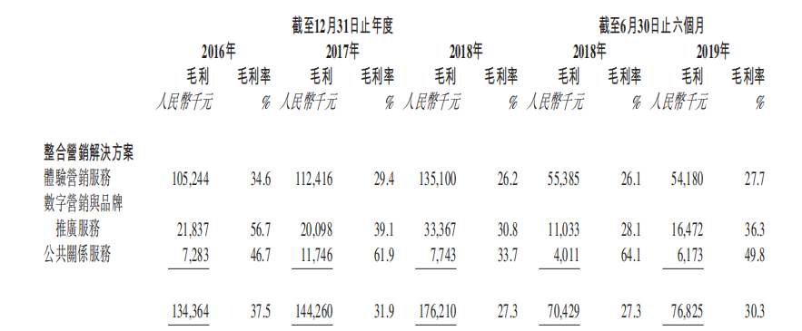 艾德韦宣的整合营销部分的毛利率在30%左右,IP体育及娱乐部分于2019年前六月的毛利率达到55.7%,属于比较赚钱的生意类型。