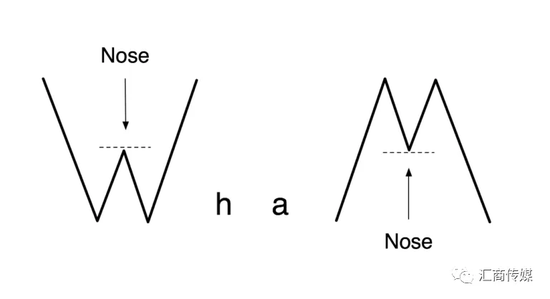 2. 当W和M模式形成时,价格在中部/鼻部里找到支撑(M)或阻力(W)。