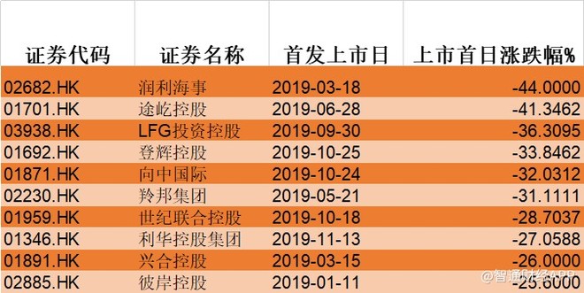 虽然港股破发已成常态,但还是破发股票仍然是打新投资者的心头之痛。在2019年港股新股上市首日跌幅榜中,润利海事跌幅高达44%。