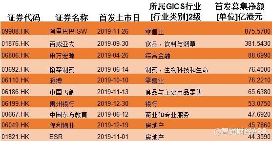 中国互联网龙头阿里巴巴赴港上市可谓2019年港股IPO最具代表性的事件,阿里巴巴不仅以融资1012亿港元荣膺港股年度最大IPO,同时也是港交所有史以来第三大的IPO。