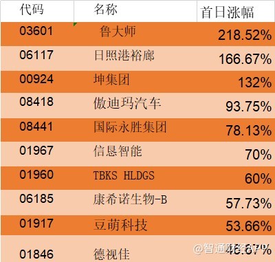 智通财经APP注意到,首日涨的并不多,但是有些新股后市发力机会比较大。如图