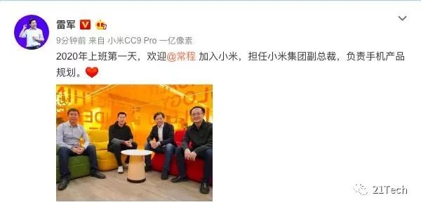 原标题:“家庭聚少离多” 刚离开联想的常程 转身加入了小米