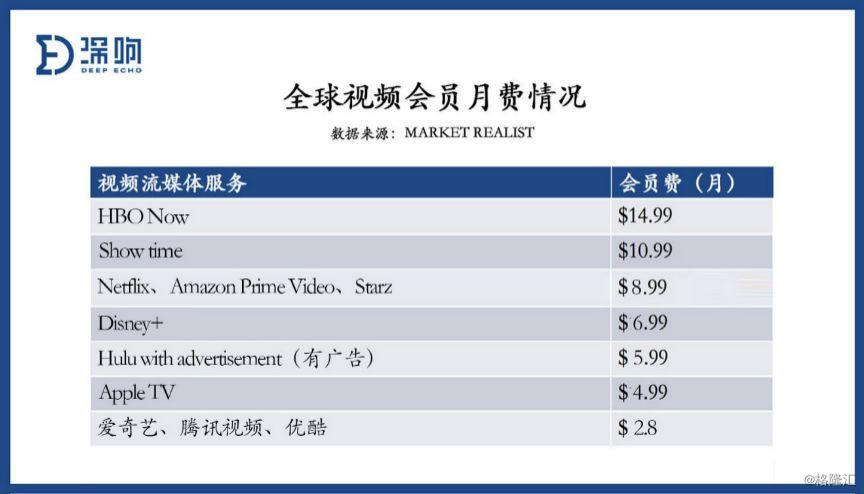 Disney+上线首日就获得了1000万个注册用户;硬件优势加上低价策略的Apple TV+也引起了业界强烈反应;亚马逊 Prime Video看似偃旗息鼓,但事实上其订阅用户接近1亿;而在多重夹击下,流媒体“老大哥”Netflix坚持涨价策略,最高档 Ultra HD 服务的订阅价已经超越 HBO Now,成为了价格最贵的主流流媒体视频服务。