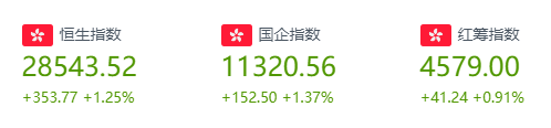 2020年第一个交易日迎来开门红,恒生指数开盘涨0.21%,全天保持震荡上涨态势。截至收盘,恒生指数涨353.77点或1.25%,报28543.52点,全日成交额达908.75亿。国企指数涨1.37%,报11320.56点,红筹指数涨0.91%,报4579点。