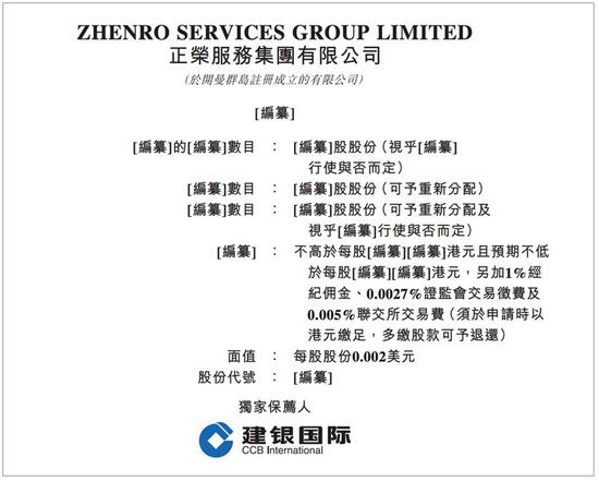 据IPO早知道消息,正荣服务集团有限公司已于昨日向港交所正式递交招股书,由建银国际担任独家保荐人。