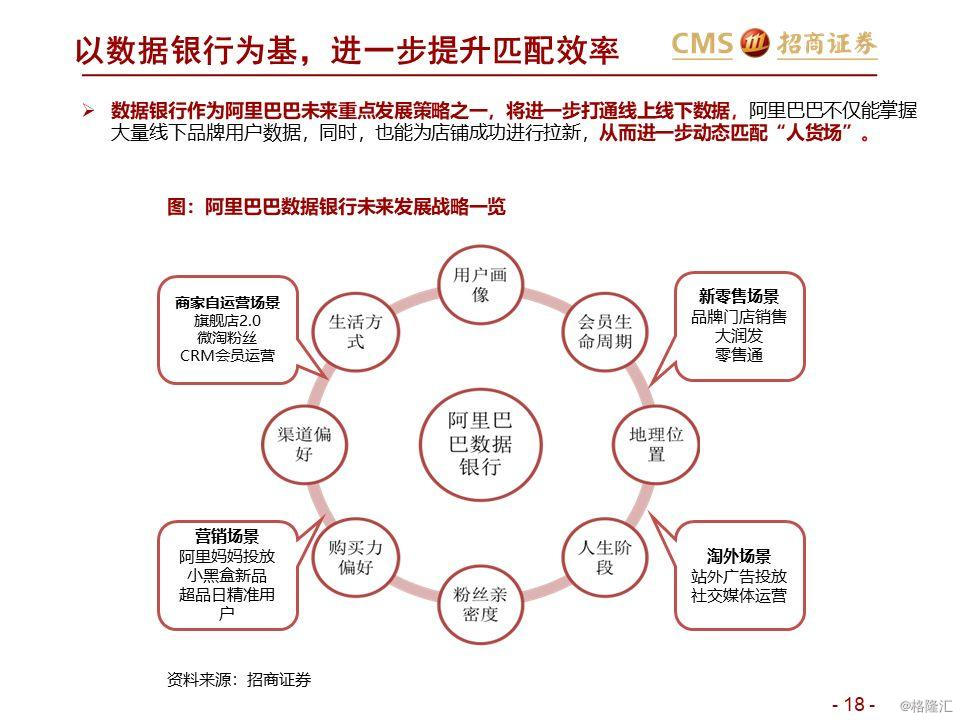 阿里巴巴的效率提升路径:1)全域营销带来的品效合一的广告投放。电商的本质是流量的黑洞 ,阿里巴巴不断从外界导流进行流量的投资,打造全域营销阵地。进入2019年后,阿里巴巴加大网络各线流量,地图、社交、线下店、资讯、视频、直播,全网找流量,全域营销有助于帮助企业加强新品宣发,成为品牌方考虑重要因素。2)数据银行全面提升品牌方运营效率,将进一步打通线上线下数据,为店铺成功进行拉新同时,助力店铺私域流量运营;3)会员生态体系下的复购和交叉销售。后电商时代核心关键词是复购和效率,各大平台一定会锁住会员,表面人选平台,实际平台选人,打通消费者消费链路,提高整体交易频次和复购,提升交易效率。