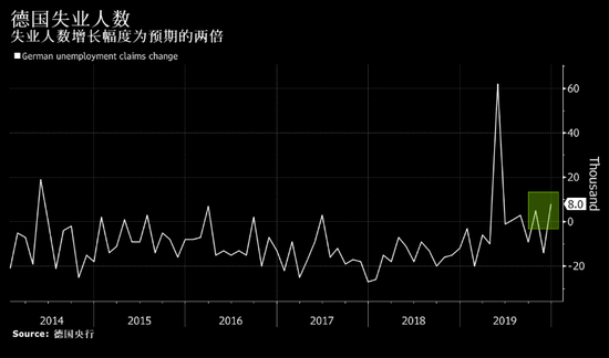 德国央行最新的预测显示,疲弱的劳动力市场将日益损害国内需求。德国央行将2020年GDP预测下调一半,目前预计仅增长0.6%。