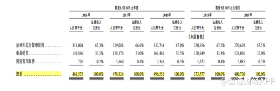 有了“流量”,就能“变现”。根据招股说明书,公司的收入主要来源于三大块,比如提供治疗及综合医疗服务;销售药品;菊潭医院托管等。