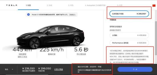 29.905万元为新车补贴后的价格,如果没了补贴的话,新车售价为32.38万元。而新车交付的时间,特斯拉标注为2020年的第一季度,并不是现在就能上牌。这就意味着,此时订车的用户必须要时刻紧盯国家新能源补贴政策调整,一旦补贴取消或者再做调整,那么现在省下的钱就还要再交出去。