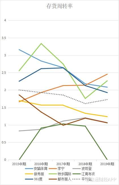 从运营数据来看,纺服板块主要几家参与者存货周转率于2019年中期达1.73,较去年同期微幅上升。其中,李宁于近几年中存货管理能力提升较快。安踏体育、361度(01361)、新秀丽(01910)、江南布衣等存货周转率下降速度较快。