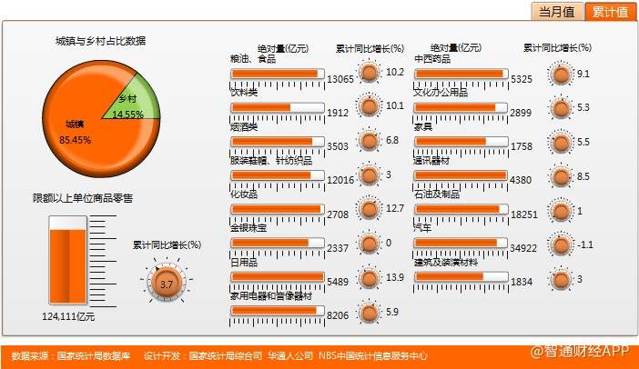 据国际统计局最新数据,限额以上单位商品零售累计同比增长3.7%,服装鞋帽、针纺织品累计同比增长3%,与金银珠宝、石油及制品、汽车、建筑及装潢材料4个板块整体累计增速低于平均值。