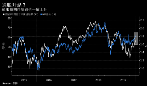 如果油价涨势继续,就可能加剧整体价格压力。衡量市场通胀预期的美国一年盈亏平衡通胀率在周一触及9月以来高位,然后回落。