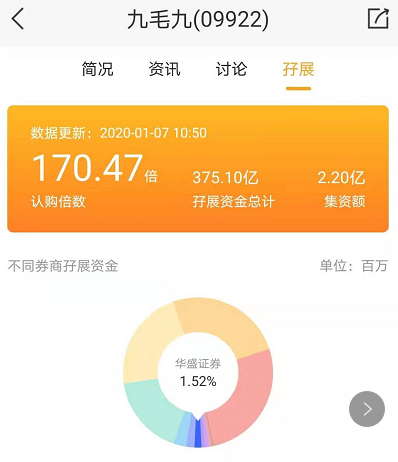 距离认购结束不到一天,九毛九孖展资金已达375亿港元,孖展倍数达170.47倍,新石文化孖展倍数甚至突破700倍。
