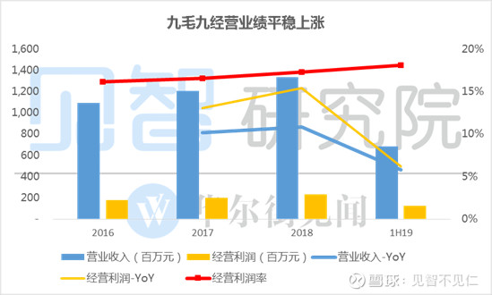 2016-2018年,九毛九品牌的餐厅数量、营业收入和经营利润的复合增长率分别为7.2%、10.5%和14.2%,似乎未免有些平淡。