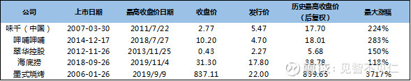 历史上看,连锁餐饮行业不乏牛股,比如Chipotle(CMG.N)在上市之后股价已累计复合上涨37倍。港股市场上,海底捞、呷哺呷哺当前股价均远高于发行价,而味千(中国)、翠华控股在上市初期(同样也是门店高速扩张期)也曾是耀眼明星。