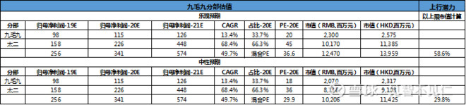 在中性预期和乐观预期下,九毛九的整体估值分别为114.3、139.6亿港元,较上限发行市值分别高出29.8%、58.6%。