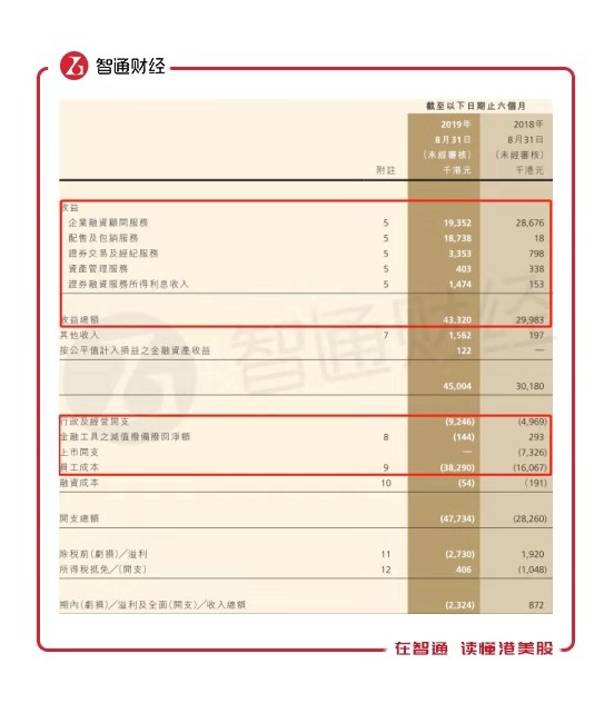 在最新的中期业绩中,摆脱上市开支的创升控股却进一步转为亏损了。智通财经了解到,公司于2019年10月28日发布上半财年业绩报告称,截止2019年8月31日,公司营收同比大幅增长49.1%至4500万港元,但是因行政开支同比增长86.1%至924.6万港元,员工成本同比增长138.3%至3829万港元,即使上市开支同比减少了732.6万港元,公司开支总额也达到了4773.4万港元,同比大幅增长68.9%。在扣除税费之后,公司由去年同期的盈利转为亏损232.4万港元。