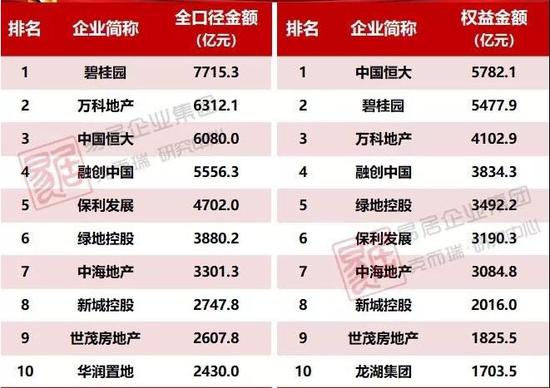 2019年房企销售排行TOP10 ,资料来源:克尔瑞