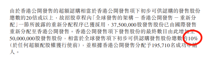 比如2019年阿里巴巴-SW共发行5亿普通股,其中香港发售股份数目1250万股,占比2.5%,配售公告显示超购逾40倍,按常理应该回拨至30%上下,但根据阿里的发售规定只回拨到10%。