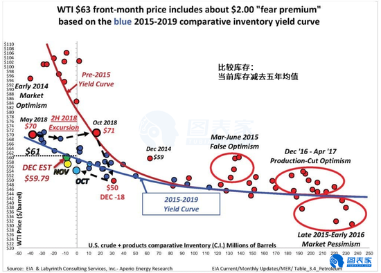 根据比较库存(Comparative Inventory)的数据,最近的上涨表明WTI和布伦特原油的“恐惧溢价”分别只有约2.5美元和3.5美元。