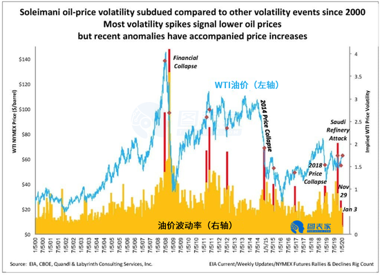 综上所述,Berman认为,较低的恐惧溢价和价格波动表明,苏莱曼尼遇刺仅仅是引发油价短暂飙升的实质性原因,而不足以令油价长期走高。