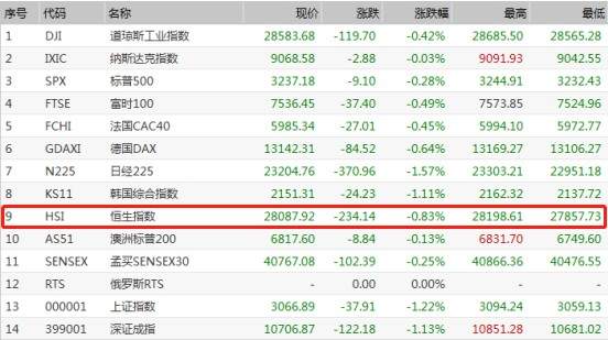 智通财经APP观测到,全球市场亦遭到“血洗”。今日亚市阶段,港股恒指盘中一度暴跌超460点,盘中跌幅一度跌超1.6%,随后回升险守28000大关。上证综指和深成指双双跌超1%,日经225指数盘中一度跌至23000点下方,为去年11月以来首次,日内跌1.57%。