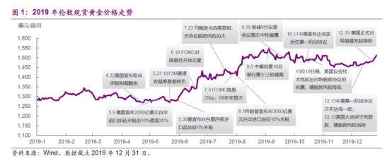 事实上,回顾2019年以来国际黄金价格走势可以发现,国际金价一直紧跟全球宏观环境的变化而波动,在贸易摩擦有所缓和时,风险资产价格上行,避险资金流出导致黄金价格受到压制。但整体来看,2019年内,在市场普遍较为担忧美债收益率倒挂、经济衰退危机及贸易关系紧张等多重因素作用下时,作为避险资产的代表,国际金价全年大涨19%。