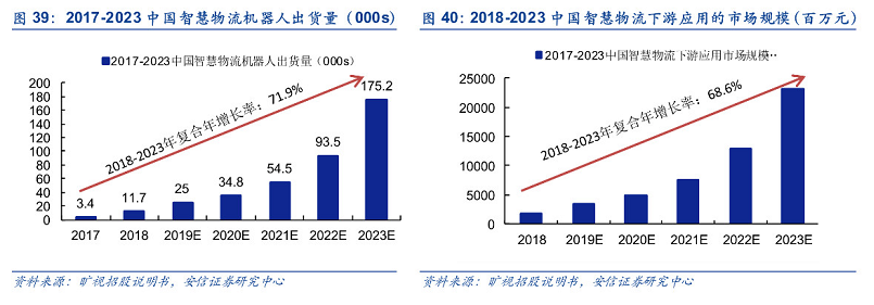 预计2018年至2023年中国智慧物流机器人的出货量年复合增长率为71.9%,预计中国智慧物流垂直领域市场规模由2018年的人民币17亿元增至2023年的人民币231亿元,年复合增长率为68.6%。