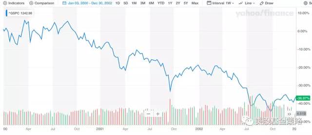 就2000年到2002年来看,都知道美国有波互联网泡沫的破灭,尽管最惨的是纳指,但是它对美国整体的资本市场和经济都是产生巨大影响的,所以标普500指数为代表的美国整体股市也在那个消化痛苦的过程中。