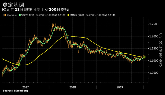 目前在1.1139的21日均线有望自2017年5月来首次上穿位于1.1140的200日均线。在逾两年前上次的金叉后,欧元兑美元在接下来的几个月里攀升约11%。