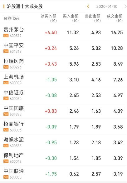 北上资金今日净流入49.42亿元,沪股通净买入贵州茅台6.40亿,净买入恒瑞医药3.43亿,净卖出中国联通1.95亿。