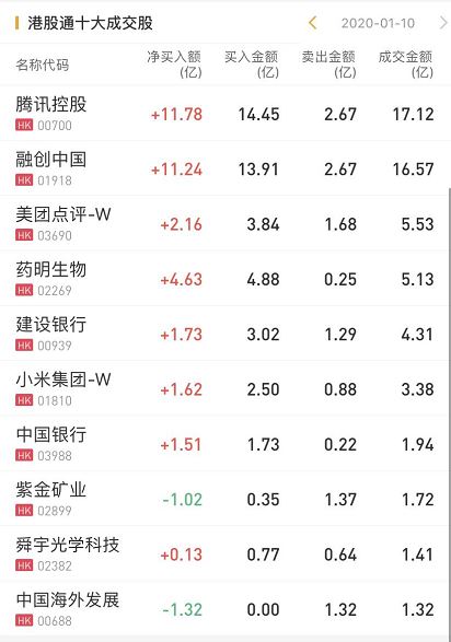 港股通今日净流入港股48.11亿港元。港股通今日净买入腾讯11.78亿港元,融创11.24亿港元,小米1.62亿港元。