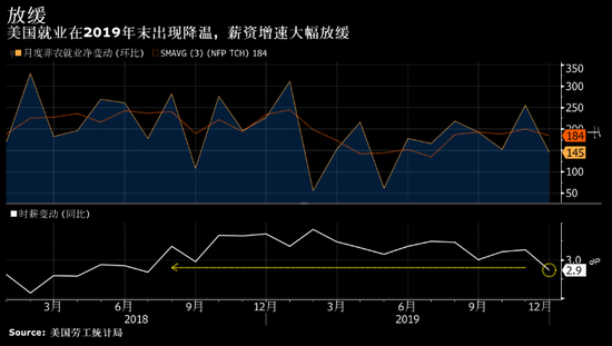 周五公布的12月非农就业报告显示,当月就业人数增幅不及预期,薪资同比涨幅创2018年以来最低,一周工时达到2017年以来最低水平。虽然失业率保持在3.5%的50年低点,但美国全年就业增加人数降到了2011年以来最低,分析人士预计2020年还将进一步放缓。