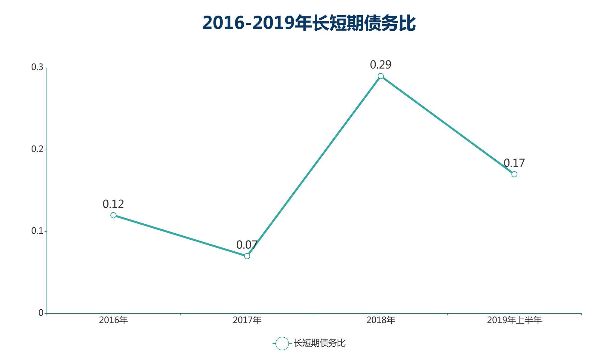 存货周转效率方面,2016-2018年该数据分别为0.16次、0.18次和0.11次,2019年却依旧表现较差。这主要由于近年来公司土地获取力度较大,且部分新获取项目尚未到达结转阶段;同时,公司商办及酒店物业较多,总资产周转率亦处于较低水平,近三年的总资产周转率分别为0.09次、0.09次、0.05次。