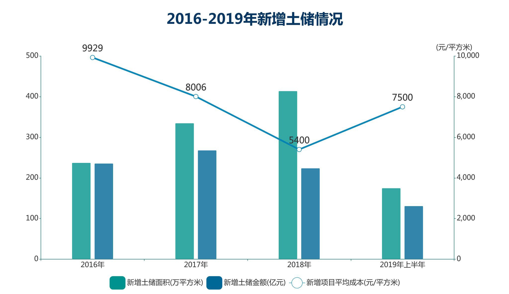 单从2019年来看,土地获取主要集中在上半年,共新增16个项目,合计新增权益建筑面积175万平方米;如果按面积计算,其中约50%新增权益建面通过招拍挂方式获取。