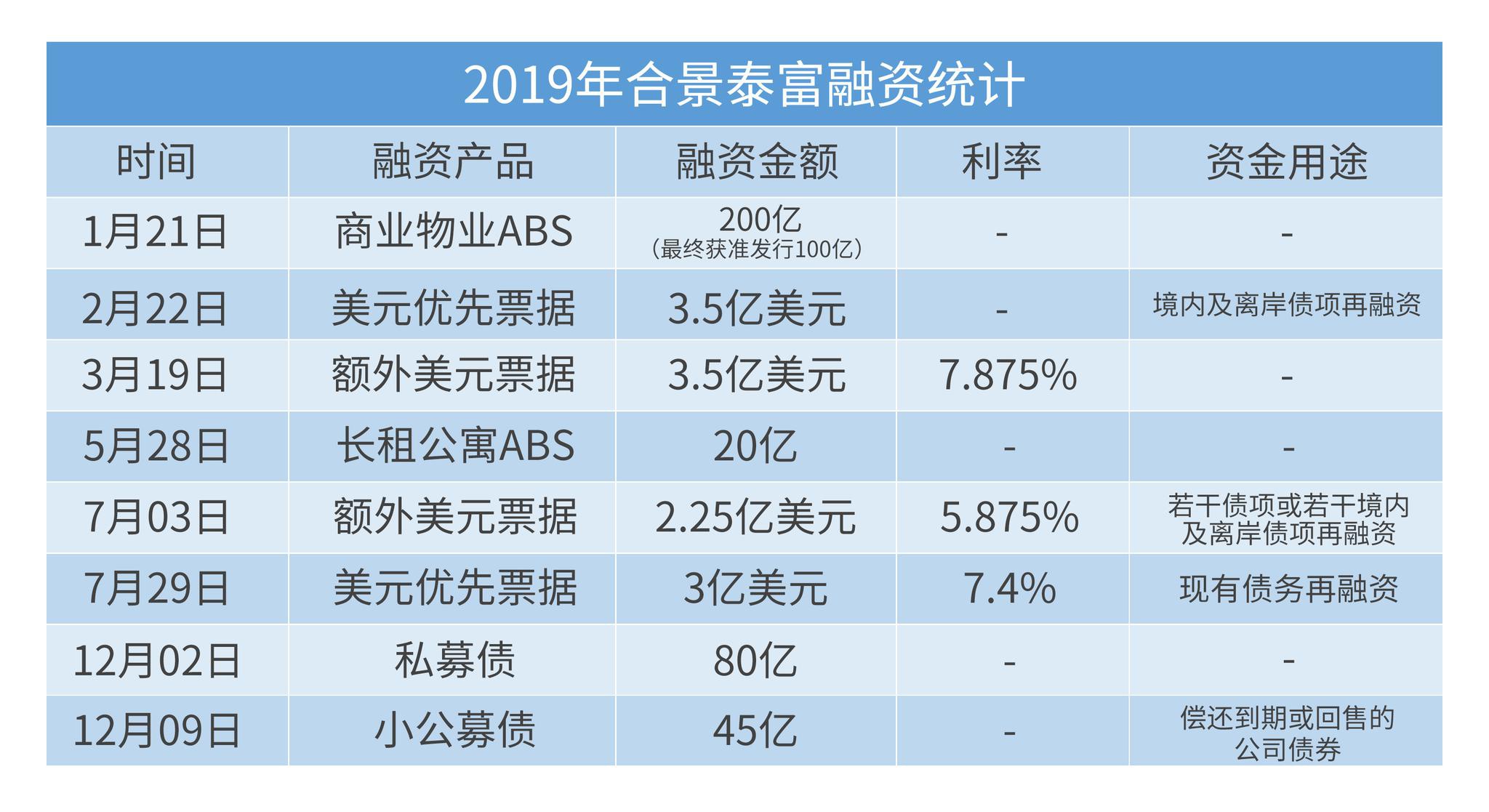 于3月11日,合景泰富发行了市场首单CMBS,具体为100亿规模的商业物业资产支持专项计划,该债券于7月份成功发行19亿元,利率5.3%。