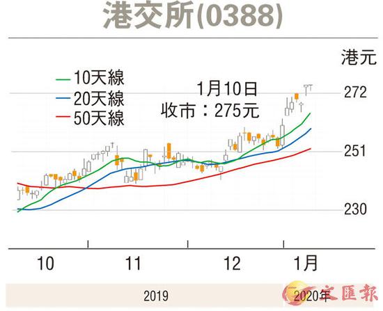 从估值来看,港交所现价市盈率36倍不算太吸引,但仍然值博。走势上,处于长期上升通道,有一底高于一底之势,由去年11月中的240元低位连升8个星期,抽穿20周保力加通道顶。投资者可逢回调低吸作中长线部署,目标价看300元,止蚀位订于250元。