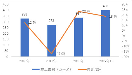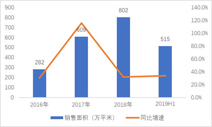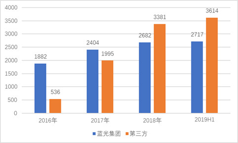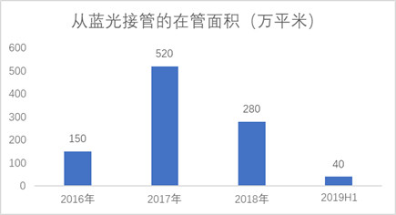 *根据最新的调研纪要,下半年来自集团的交收面积将10倍于上半年。接下来看蓝光发展这几年的竣工面积,也就是它的母公司这几年竣工面积平均在300~400万方左右。这个增速我觉得只能说还行,还不能说特别好的一个快速的发展。从母公司接收的物业2016年大概150万方,2017年520万方,2018年只有280万方,其实下半年更少就有40万方。但是根据投关提供的信息,就是2019年下半年集团提交的交收面积应该会10倍于上半年,也就大概是400万方,全年大概440万方左右。