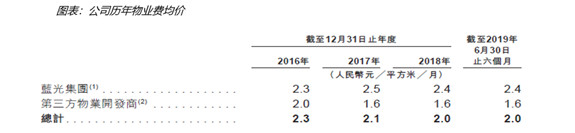 来自蓝光发展母公司的物业,它的收费是比较高的,平均是2块4左右;而来自第三方开发商的物业,他的收入物业管理费就相对来说低一点,只有1块6左右,平均下来大概是两块钱左右的一个物业管理费水平,整体来说也是比较偏低的。当然这个可能和他的主要经营区域是在四川地区有关系,因为四川地区的物价总体来说是要比沿海地区比如长三角地区和珠三角地区要便宜一些。