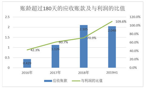 他的收缴率偏低,导致一个问题就是他的180天内应收账款是比较高的,今年上半年应收账款与利润的比值达到109%。