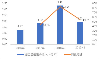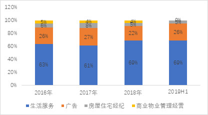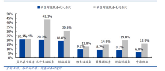 图表:2019H1主要物业上市企业社区增值服务收入及毛利占比