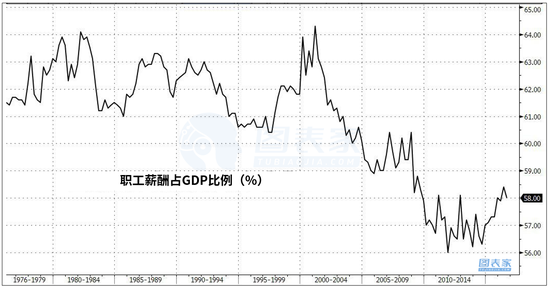 在20世纪下半叶,美国工人在获得公平份额方面表现良好。根据国民收入和产品核算,职工薪酬占国家经济总增加值的比重稳定在61% - 65%之间。但在2001年之后,一切都变了,劳工的份额开始下降,直到2012年降到57%以下。全球化是一个重要的推动因素。