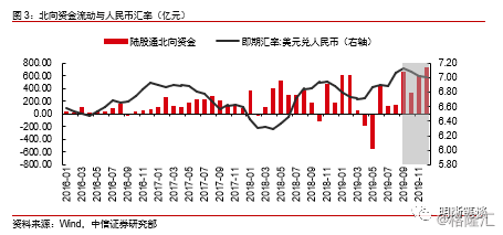 人民币汇率与资本流动之间的影响是相互的,从陆股通北向资金的流入情况来看,北向资金的加快流入使得对于人民币的需求增加,也起到推高人民币汇价的作用。人民币汇率与资本流动之间的影响是相互的,当人民币汇率存在升值预期时,人民币资产的吸引力增强,境外资金涌入,而同时加快流入的境外资金增加了对于人民币的需求,从而从供需角度推高人民币的汇率价格。基于以上逻辑,观察近年来陆股通北向资金的流入情况我们可以发现,自去年9月开始,通过陆股通流入的北向资金明显增多,这也与人民币升值走势一致,因此从相互作用的角度来看,境外资本的流入对于人民币走强也具有一定的影响。