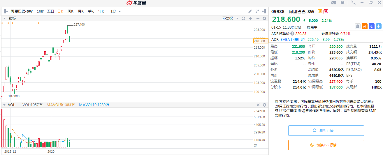 而在2019年阿里巴巴的香港二次上市发行价为176港元,到了2020年1月份其股价一路强势上涨至最高227港元,每个中签的投资者收益最大高达5100港元!