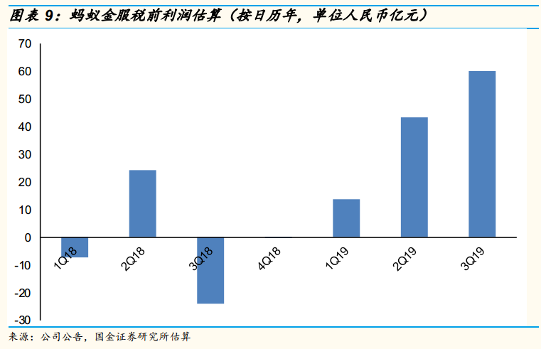 根据国金证券估算,在2019自然年,蚂蚁金服的税前利润达到200亿元人民币问题不大;在3-5年内,蚂蚁金服实现500亿甚至800亿量级的税前利润,是合理的、有可能的。