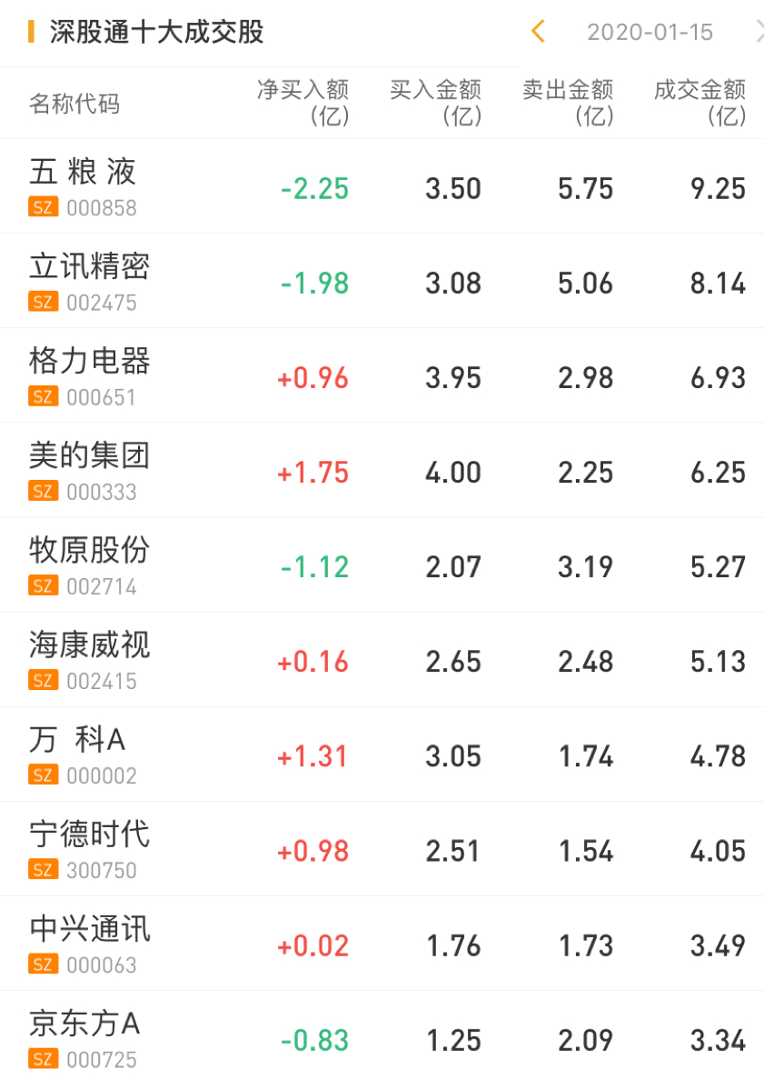 深股通净买入万科A1.31亿元,净买入美的集团1.75亿元,净买入格力电器0.96亿元;净卖出五粮液2.25亿元。