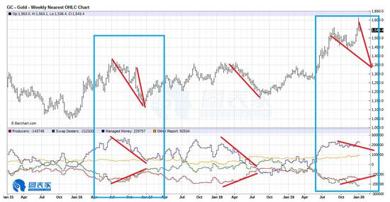 最后,黄金期货交易员的持仓情况也与2016年的格局相似。生产商和掉期交易商大举做空,而黄金基金经理(动能交易者)则大力做多黄金。2016年金价的走势对基金经理并不友好,这次可能会出现相同的一幕。
