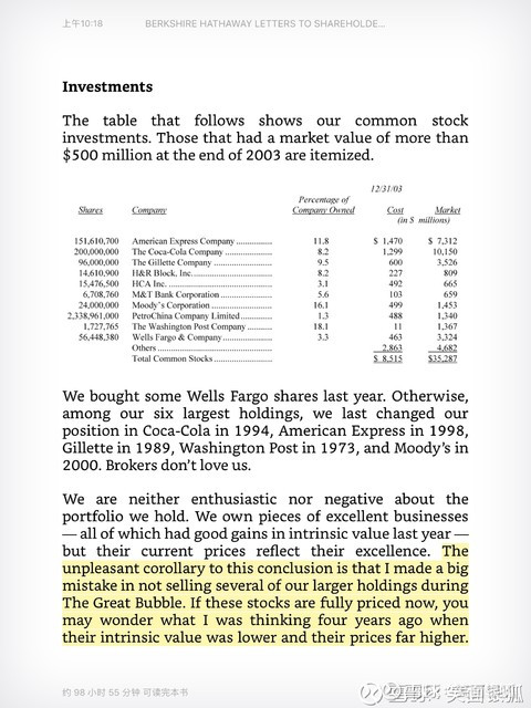 3、事实上,巴菲特还是很后悔大泡沫的时候为什么没有把可口可乐这些股票卖掉。