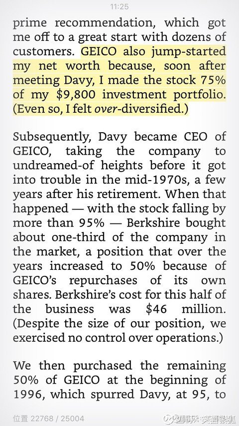 4、巴菲特经常讲集中投资,他集中的时候有多集中呢?单只股票持仓75%还抱怨过度分散了。可见他老人家也是反对纯粹为了分散和分散的。