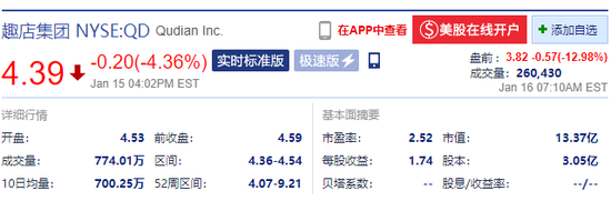 新浪科技讯 1月16日晚间消息,趣店美股盘前跌超11%,此前宣布撤回2019财年业绩指引,并宣布5亿美元的新股回购计划。